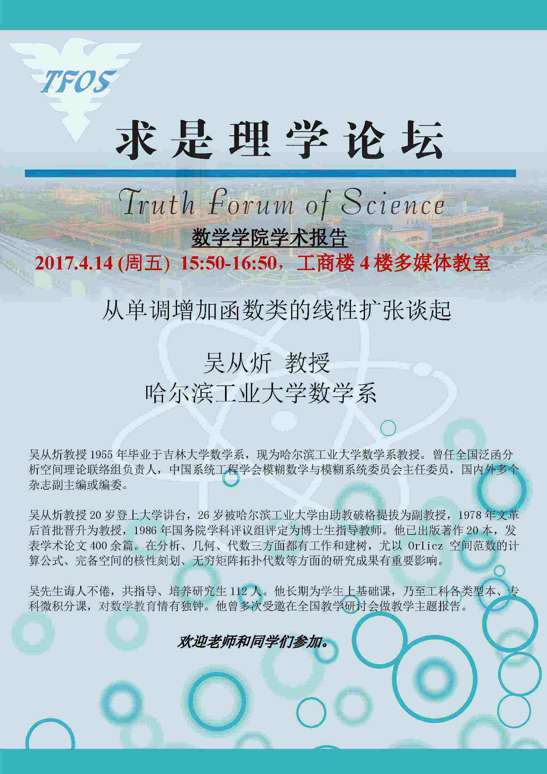 学术科研 学术团队 学术活动 学术会议 学术报告 讨论班 School Colloquium 信息公告 文件汇编 学术报告 乐竞APP在线登录 > (4月14日)从单调增加函数类的线性扩张谈起 来源:乐竞体育官方app下载 发布时间:2017-04-13 859