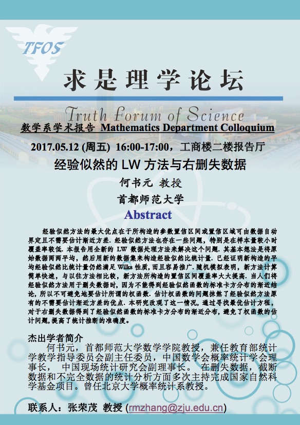 学术科研 学术团队 学术活动 学术会议 学术报告 讨论班 School Colloquium 信息公告 文件汇编 学术报告 乐竞APP在线登录 > [5/12][数理统计]何书元教授题为《经验似然的 LW 方法与右删失数据》的报告 来源:乐竞体育官方app下载 发布时间:2017-04-30 858