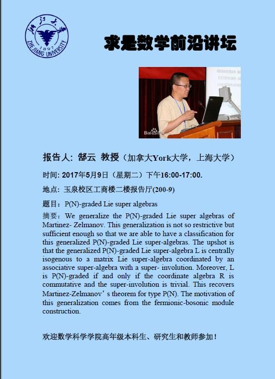 学术科研 学术团队 学术活动 学术会议 学术报告 讨论班 School Colloquium 信息公告 文件汇编 学术报告 乐竞APP在线登录 > (5月9日)求是数学前沿论坛之郜云教授讲座 来源:乐竞体育官方app下载 发布时间:2017-05-07 954