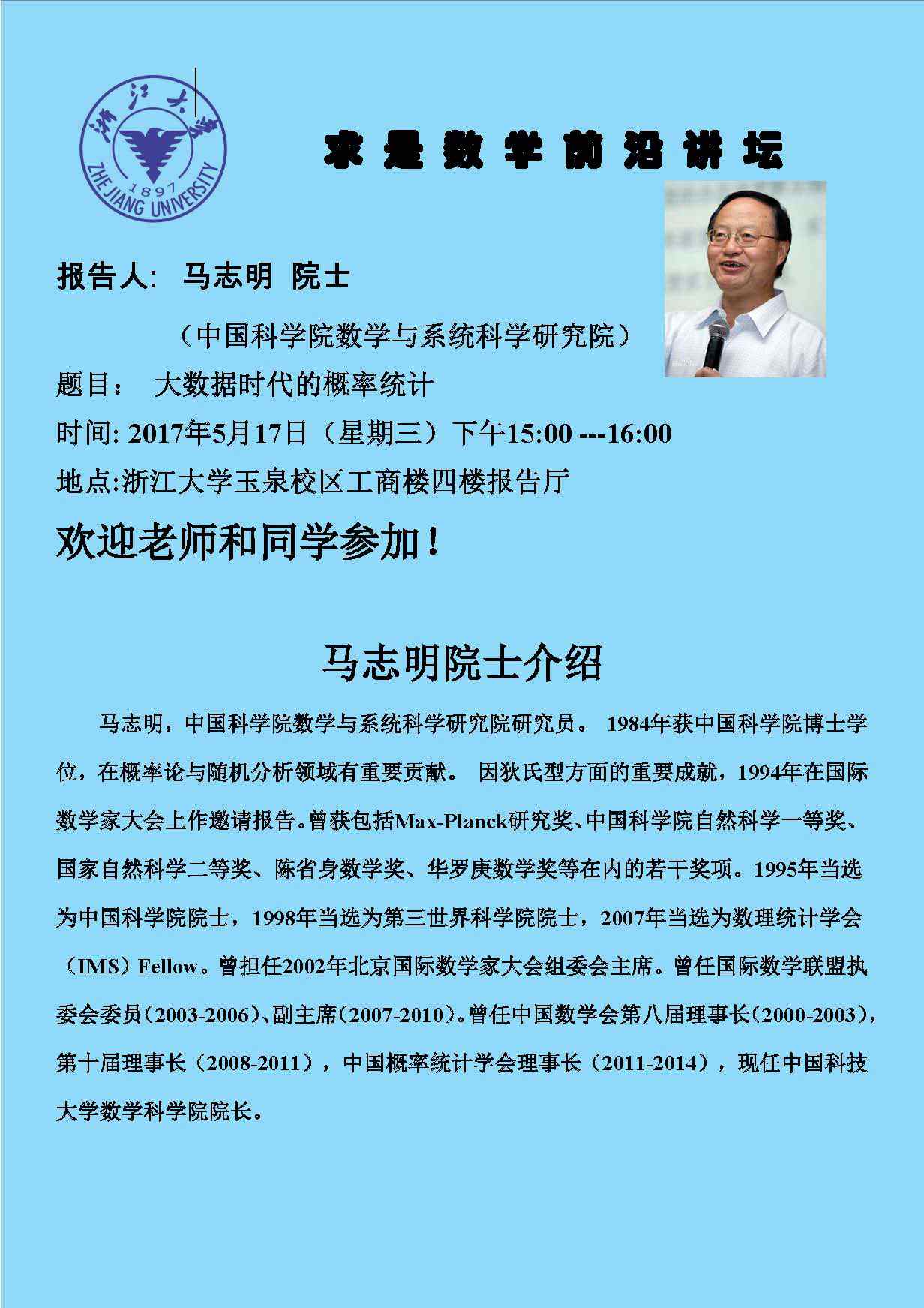 学术科研 学术团队 学术活动 学术会议 学术报告 讨论班 School Colloquium 信息公告 文件汇编 学术报告 乐竞APP在线登录 > (5月17日)马志明院士题为“大数据时代的概率统计”的报告 来源:乐竞体育官方app下载 发布时间:2017-05-10 940