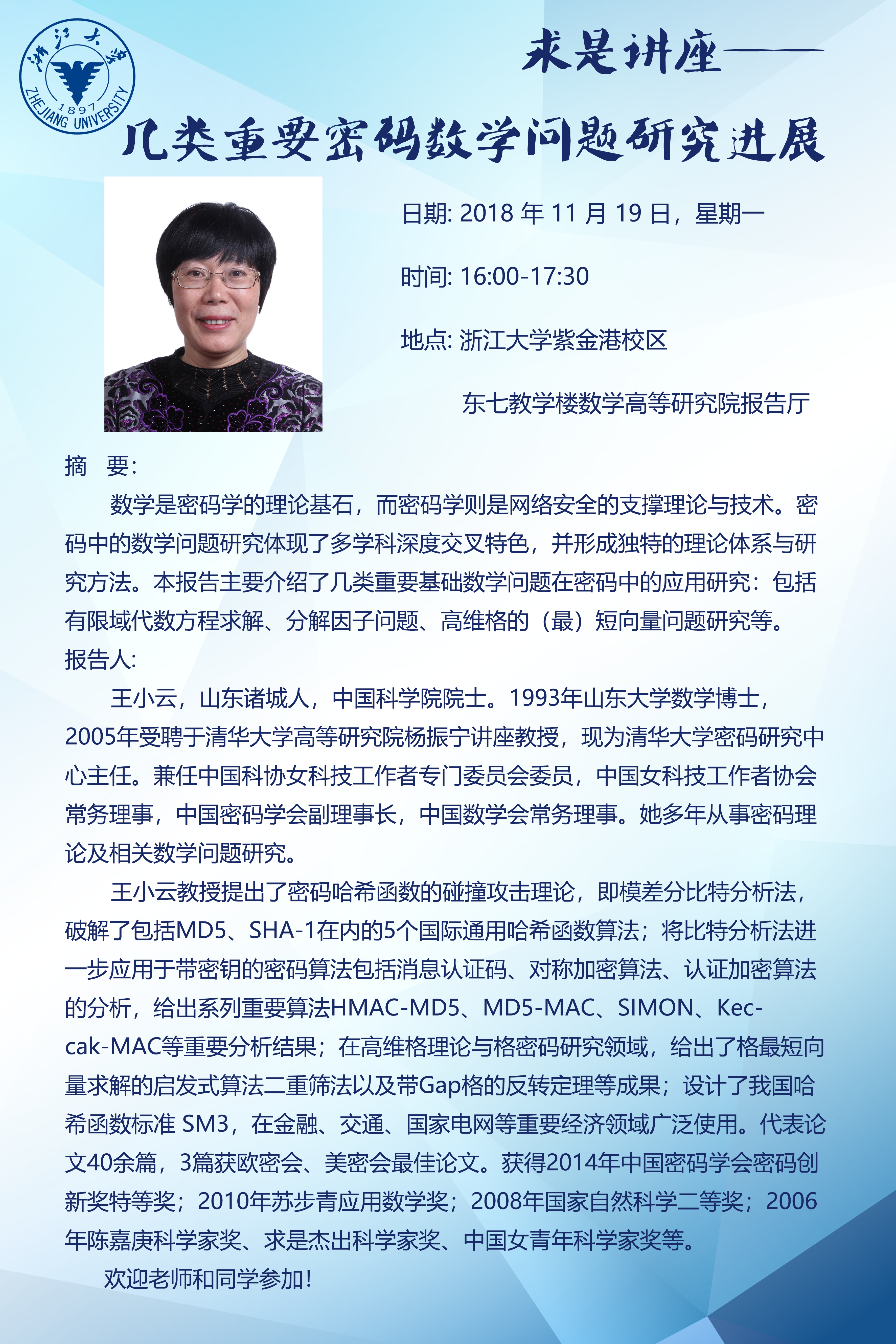 学术科研 学术团队 学术活动 学术会议 学术报告 讨论班 School Colloquium 信息公告 文件汇编 2018 乐竞APP在线登录 > 求是讲座――几类重要密码数学问题研究进展 来源:乐竞体育官方app下载 发布时间:2018-11-16 716