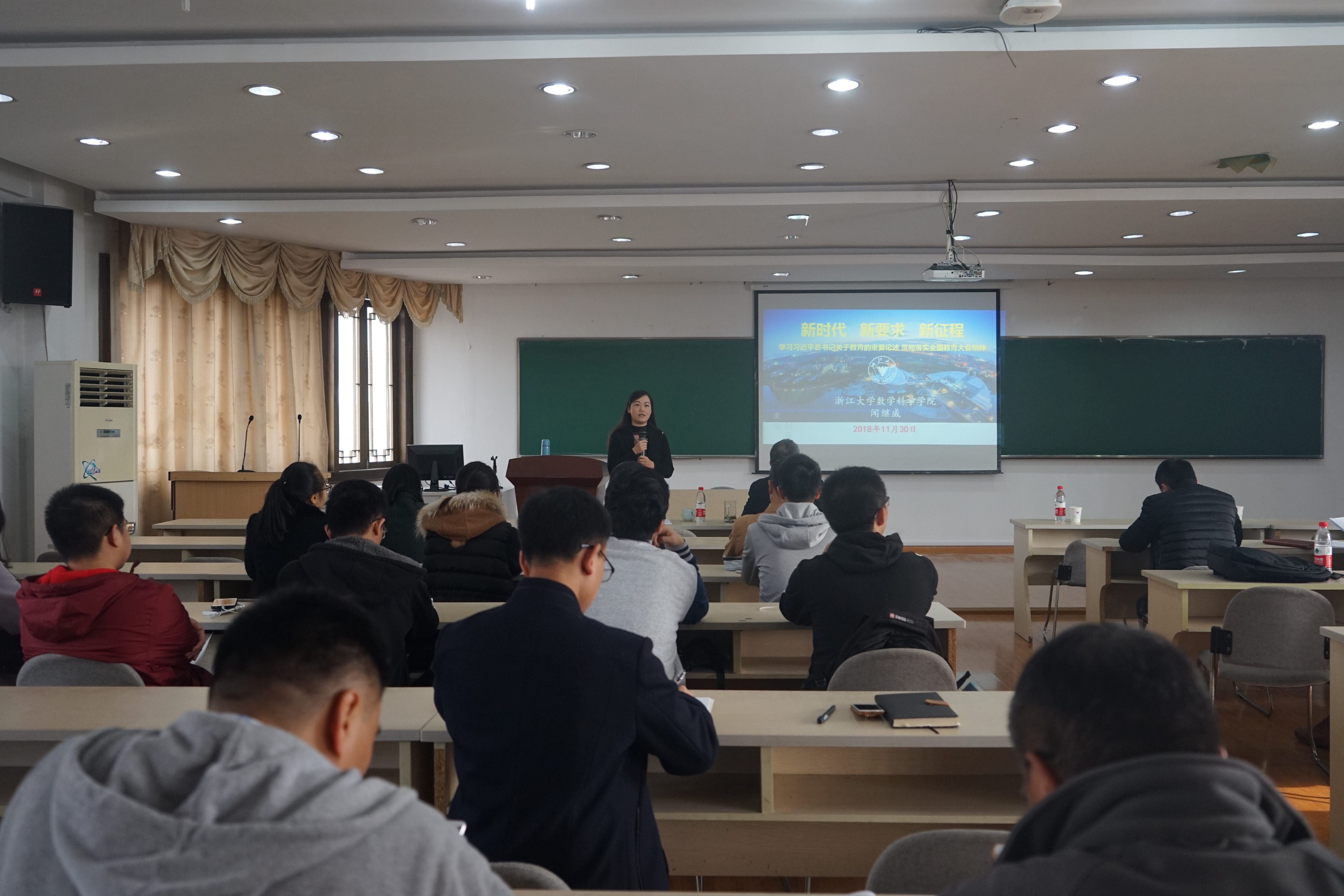 2018年11月30日,乐竞体育官方app下载党委在浙江大学玉泉校区工商管理楼四楼举办了新一期“先锋学子”党员专题学习会。乐竞体育官方app下载党委书记闻继威以“新起点、新时代、新征程”为主题,结合习近平总书记在全国教育大会上的重要讲话精神,给学院党员们上了一节生动深刻的党课。此次“先锋学子”专题学习会由乐竞体育官方app下载党委副书记姚晨主持,乐竞体育官方app下载全体教工党员、全体学生党团学骨干参加。