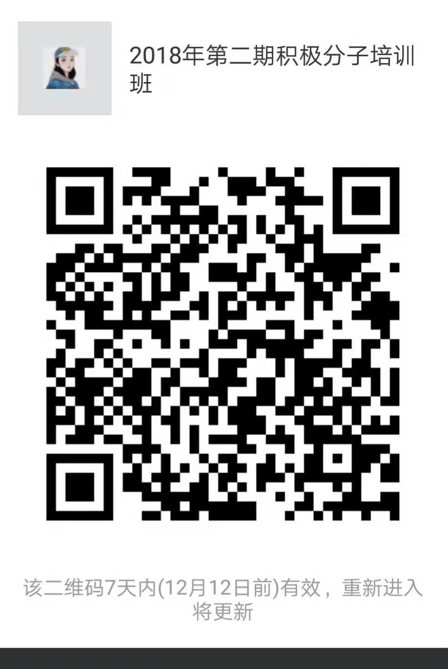 请乐竞体育官方app下载2018年第二期积极分子培训班学员(详见附件名单),扫描以下二维码加入“2018年第二期积极分子培训班”群。若已参加过学园积极分子培训班并以取得结业证书的同学,请联系李玉婷老师进行登记。如有任何问题请及时相关负责老师。