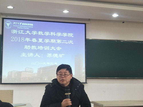 2019年3月8日下午,乐竞APP在线登录在逸夫工商楼四楼会议室召开了2018-2019学年春夏学期第二期研究生助教培训会议。本期助教培训会议主讲人为“学生最喜欢的浙江大学老师”之一、浙江大学微积分课程负责人苏德矿教授。 学院教务科熊晶蕾、付�老师以及所有2018-2019学年春夏学期研究生助教参与了本次培训会议。