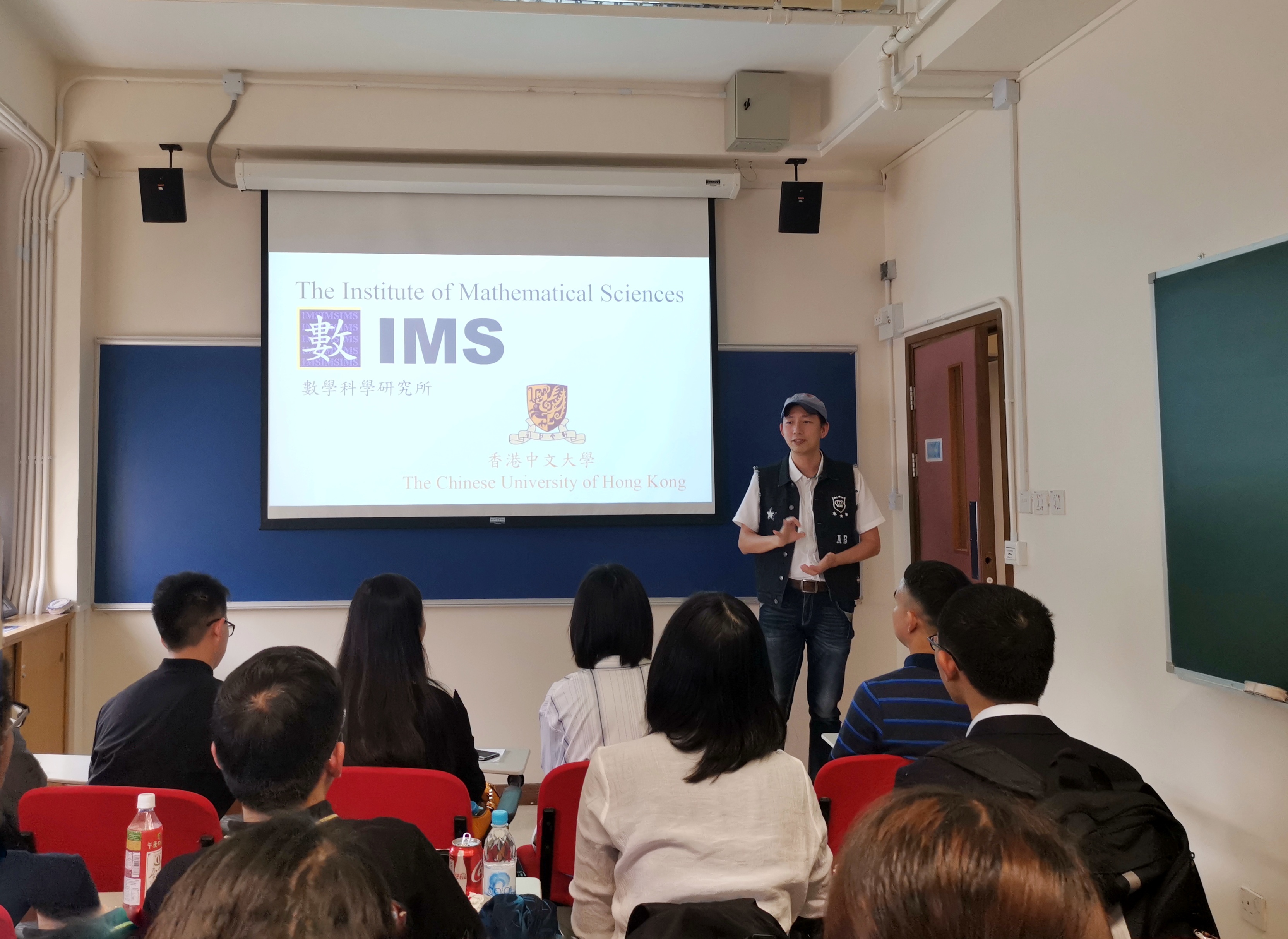 香港中文大学数学系也对交流团进行了热情接待。在欢迎会上,数学系系主任邹军教授首先对师生们的到来表示热烈欢迎,接着对数学系与研究生院的概况进行了详细介绍。之后由杨教授介绍了数学科学研究所的概况,Eric Chung教授等介绍了目前重点的研究方向―Computational Inverse Problems与图像去噪。在欢迎会的尾声,数学系向我们简要介绍了他们的课程,并欢迎我们旁听。双方老师合影留念后,欢迎会正式结束。