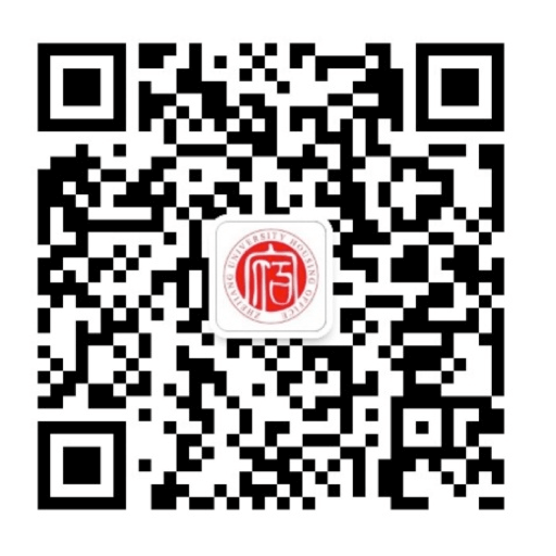 请用微信扫描下方二维码,关注【浙大学生公寓管理服务中心】微信公众号。关注后请务必进行身份认证,已完成宿舍申请的同学,在开学报到前一天,浙江大学公寓鼓舞中心会通过微信公众号发送具体寝室信息。宿舍生活相关信息也可在公众号内获取。