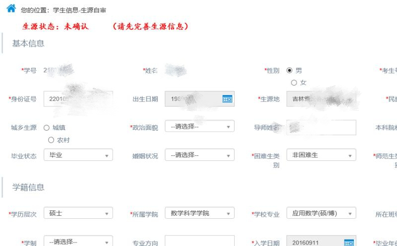 ②信息核对:登录之后,点击左侧的“生源自审”确认自己的信息,信息录入完成后,请务必记得点击右下角的“确认”键