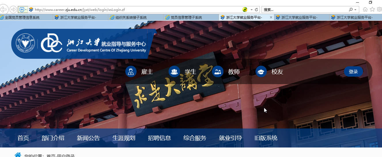 ①登录:登录浙江大学就业服务平台http://www.career.zju.edu.cn/jyxt/web/login/xsLogin.zf,点击登录,选择学生登录,用户名为学号,密码默认123123(实在登录不上的尽早联系李萌老师)