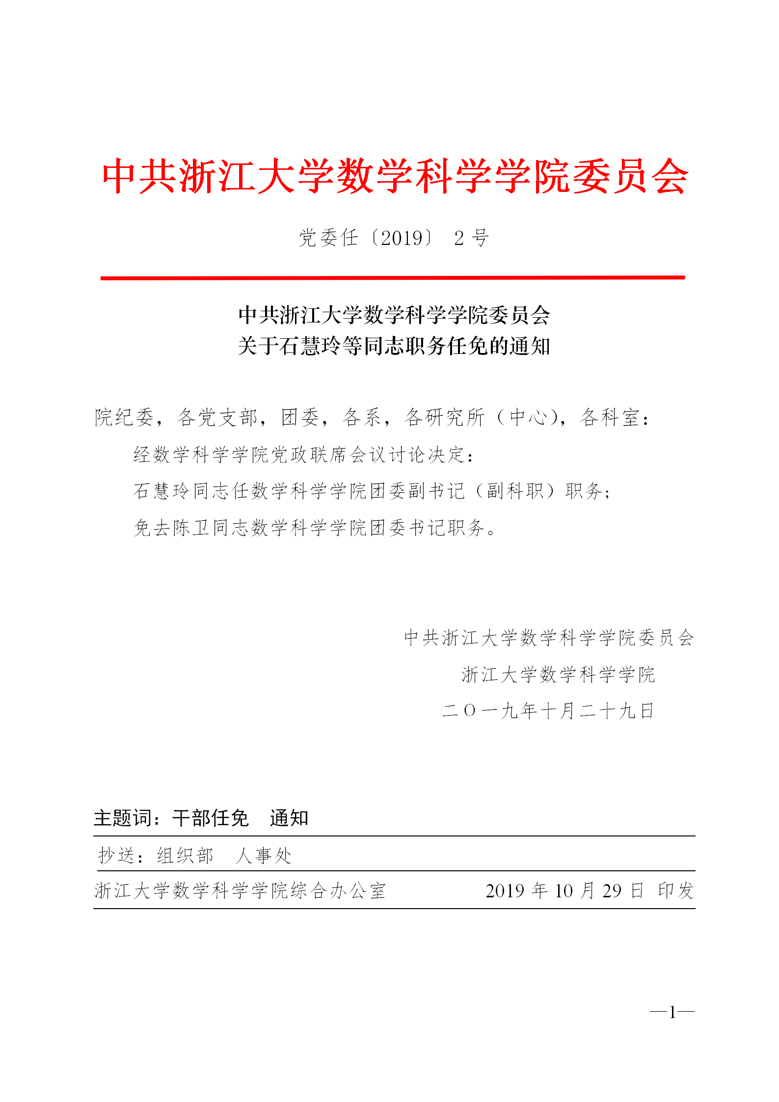 通知公告 通知公告 重要通知 本科生 研究生 科研 教学 人事 公示 学术活动 学术会议 新闻图片 院系新闻 院内邮件 公示 乐竞APP在线登录 > 中共乐竞APP在线登录委员会 党委发【2019】2号 中共乐竞APP在线登录委员会 关于李萌等同志职务任免的通知 来源:乐竞体育官方app下载 发布时间:2019-10-29 730