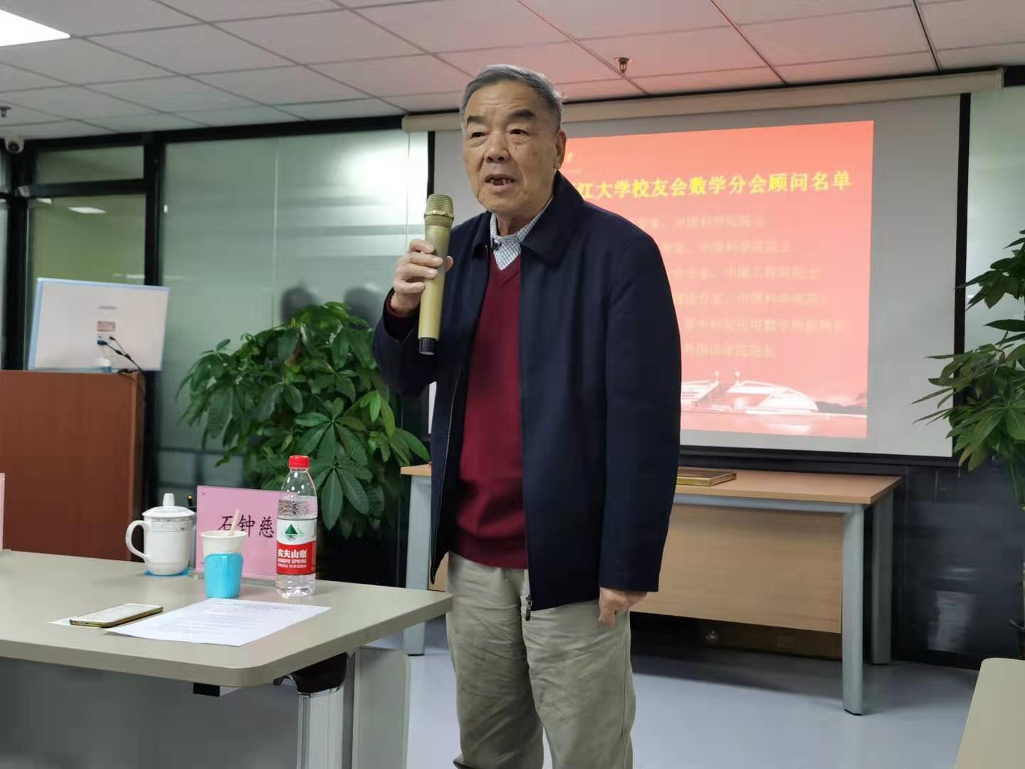 仪式后,石钟慈院士作为顾问代表讲话。他首先祝贺浙大北京校友会数学分会的成立,并讲述了在浙大精神的鼓舞下那些激情燃烧的岁月,尤其是1951年缘起浙大、随同院系调整、师从陈建功先生科研等激动人心的经历,饱含激情地表述了对浙大的热爱。他指出,乐竞体育官方app下载作为浙大名片,秉承“求是”精神,人才辈出,必将在创建世界一流学科中获得更大发展。石院士谈了对校友会的认识,对分会的成立给予充分肯定,他期待北京浙大校友会数学分会能够充分发挥纽带作用,加强母校和校友之间的联系。