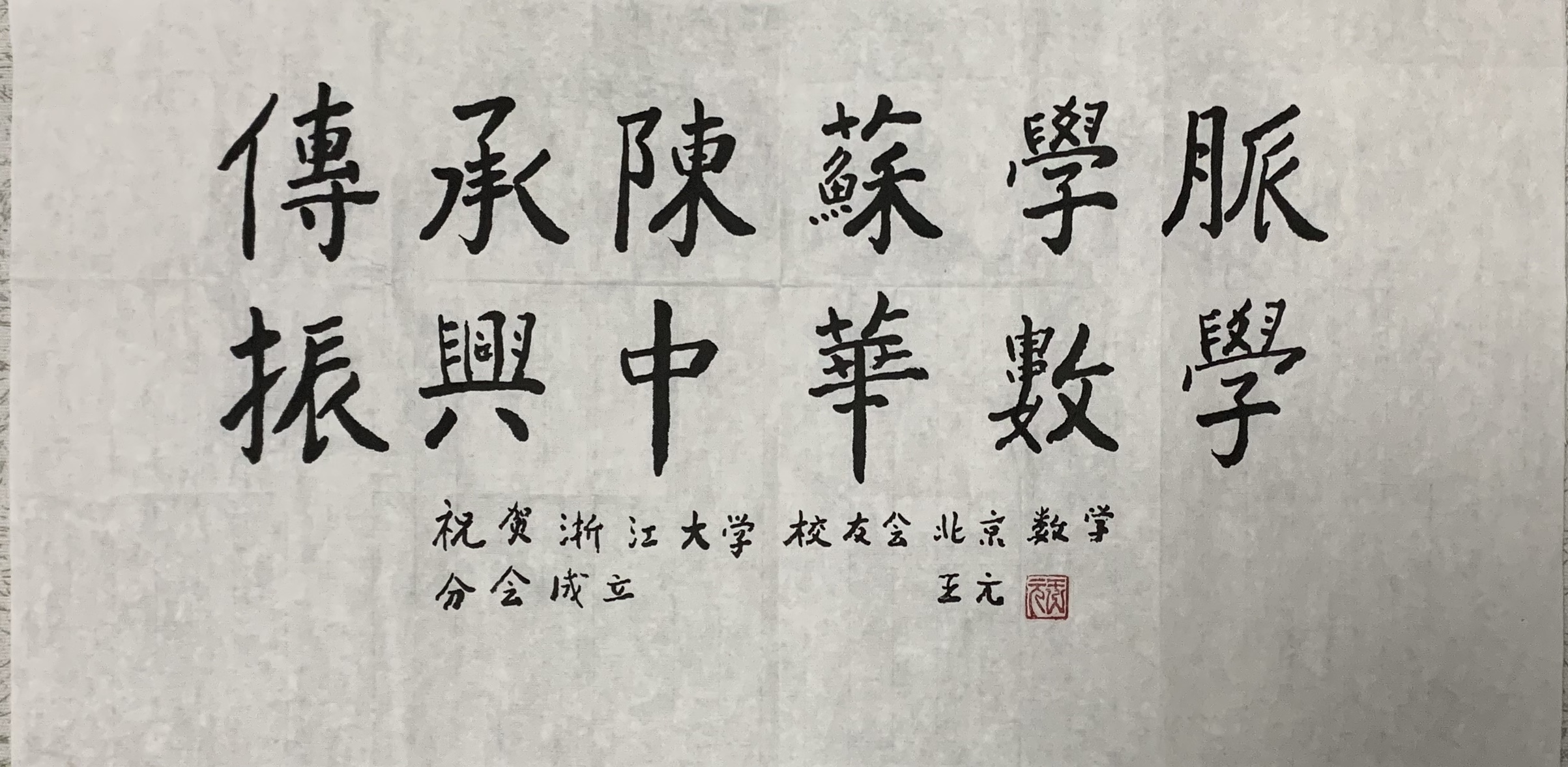 筹建数学分会自2018年8月开始,8月中旬,乐竞体育官方app下载院长包刚、党委书记闻继威、党委副书记姚晨专程到北京约见在京的校友代表,并成立了筹备组。之后筹备组组织校友探访校友代表,包括浙大乐竞体育官方app下载杰出校友王元院士、石钟慈院士、原杭大副校长,浙大数学奠基人之一陈建功先生之子陈翰馥院士等。王元院士对分会的成立欣然题词“传承陈苏学派 振兴中华数学”。