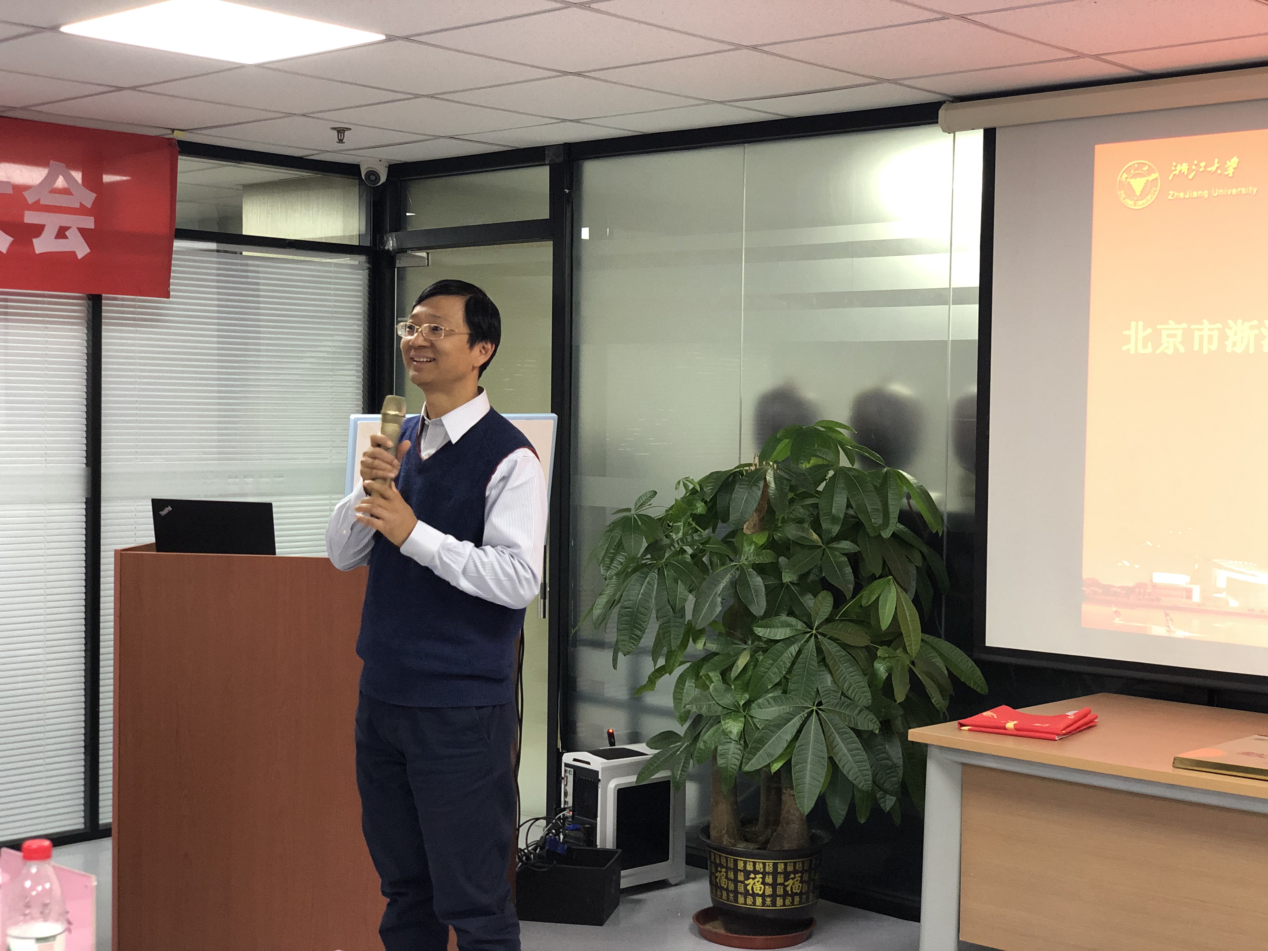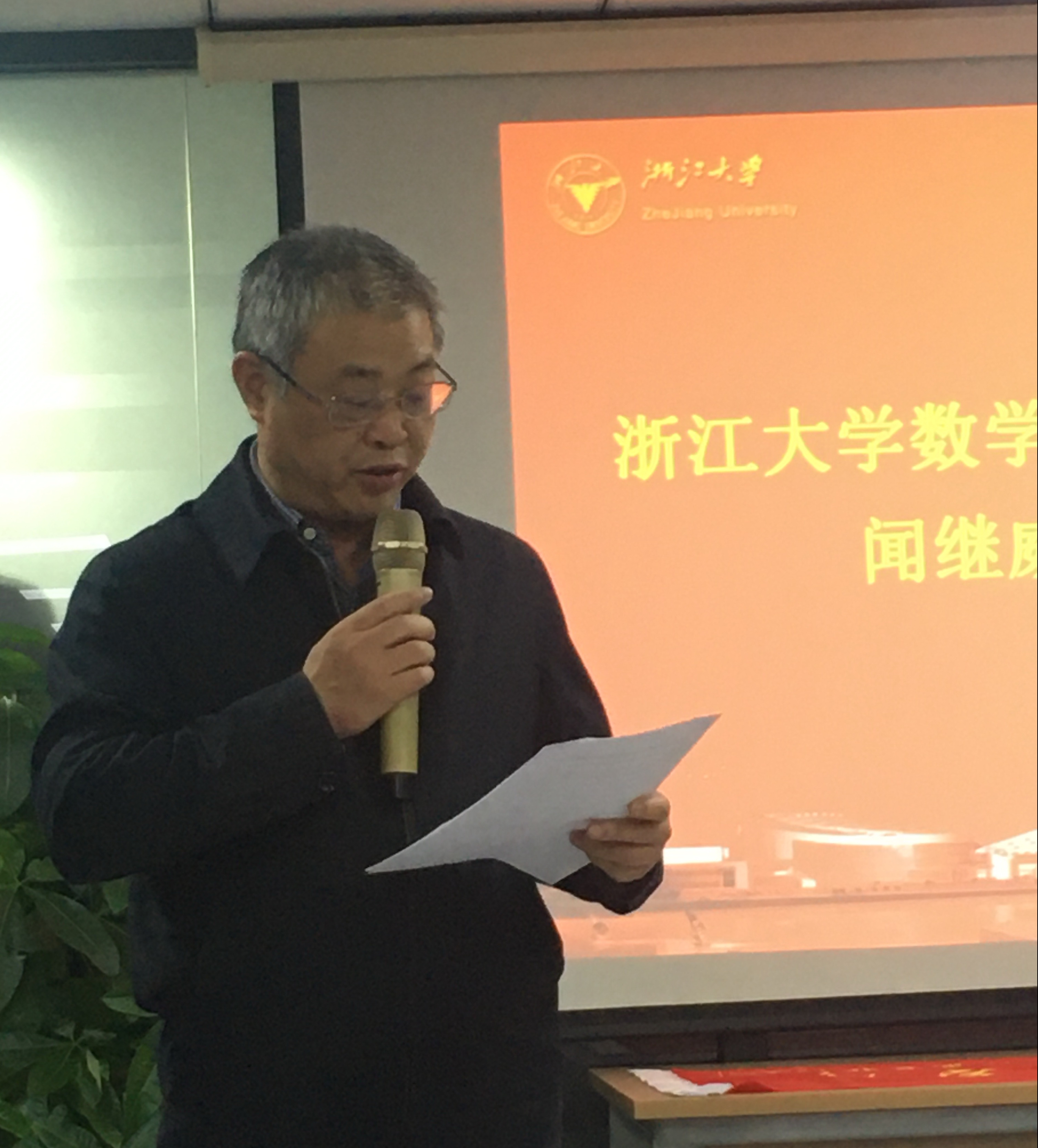 北京市浙大校友会潘里新书记,兄弟分会代表,IT分会会长冯国震、地学分会秘书长秦克章等对数学分会成立表示祝贺。