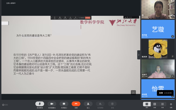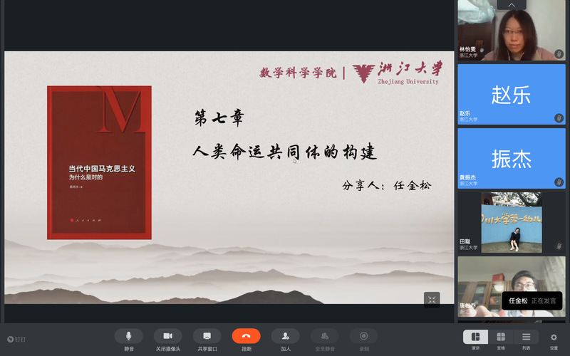 停课不停学,学习不延期,开学以来,学院“核心价值观进班级”讲师团线上读书交流会已举办了三周,2020年3月31日晚8点,最后一期线上读书交流会顺利举行,本期交流会由任金松和刘荣两位同学对《当代中国马克思主义为什么是对的》一书的最后两章进行分享,讲师团所有成员共同参与讨论。