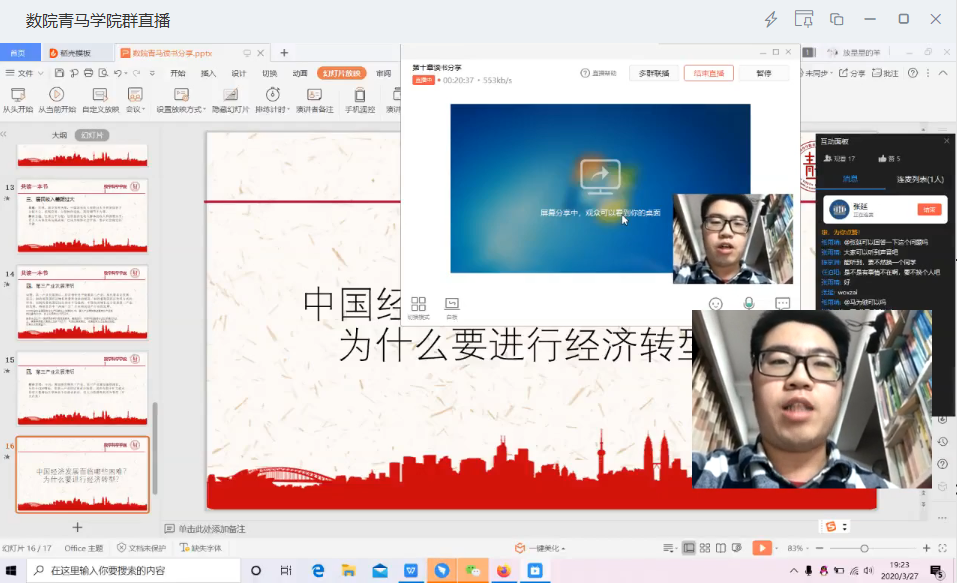 3月27日晚7时,乐竞体育官方app下载青马学院的学员们迎来了“共读一本书”——《中国改革顶层设计》线上交流会的最后篇章。目前虽然疫情仍然没有过去,但是同学们学习的心却从未停止。