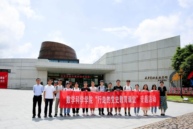 7月20日,学院暑期社会实践团来到温州平阳苏步青故乡,寻访浙大数学初心,赓续陈苏精神根脉。实践团由师生党员、“核心价值观进班级”讲师团成员、学生骨干等组成,在指导教师应用数学系副系主任郭正初教授的带领下共同前往学院牵头建设的浙江大学学生党建与思政现场教学基地——苏步青励志教育馆、苏步青故居和浙江省“一大”旧址寻访学习。