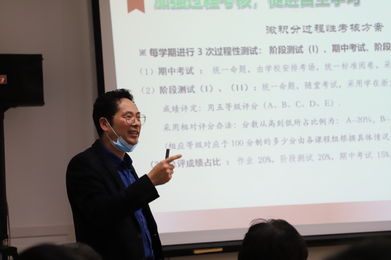 教学质量管理办公室主任谷辉介绍了新文件下成立的基层教学组织在原来基础上做了深化,主要在数量和规模上都做了合理设定,以便于更好地开展基层教学活动。