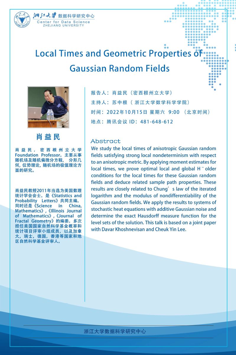 学术科研 学术团队 学术活动 学术会议 学术报告 讨论班 School Colloquium 信息公告 文件汇编 2022 乐竞APP在线登录 > Local Times and Geometric Properties of Gaussian Random Fields 来源:乐竞体育官方app下载 发布时间:2022-10-15 213