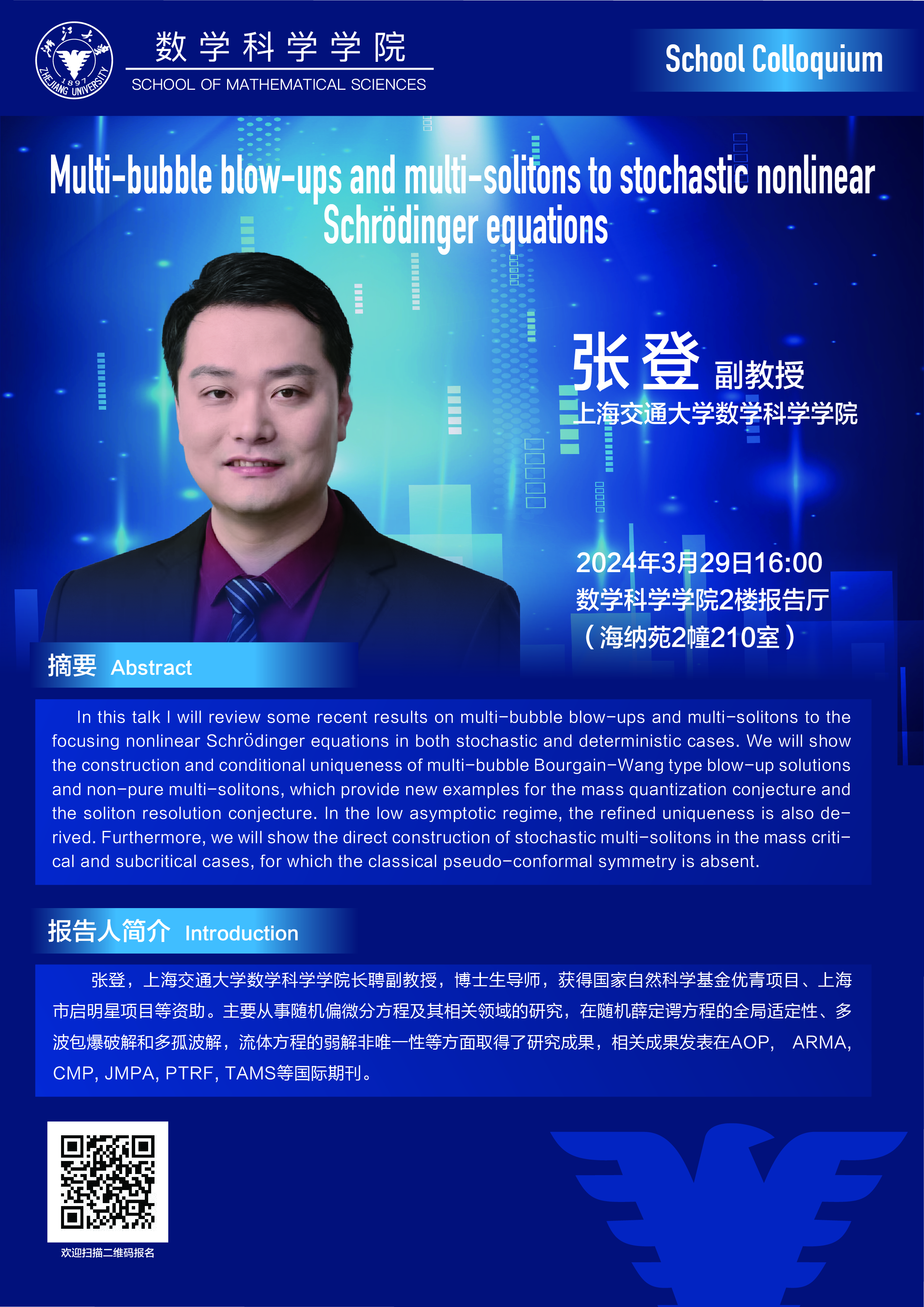 通知公告 通知公告 学术活动 学术会议 新闻图片 院系新闻 院内邮件 2024 乐竞APP在线登录 > School Colloquium——Multi-bubble blow-ups and multi-solitons to stochastic nonlinear Schrödinger equations 来源:乐竞体育官方app下载 发布时间:2024-03-25 369
