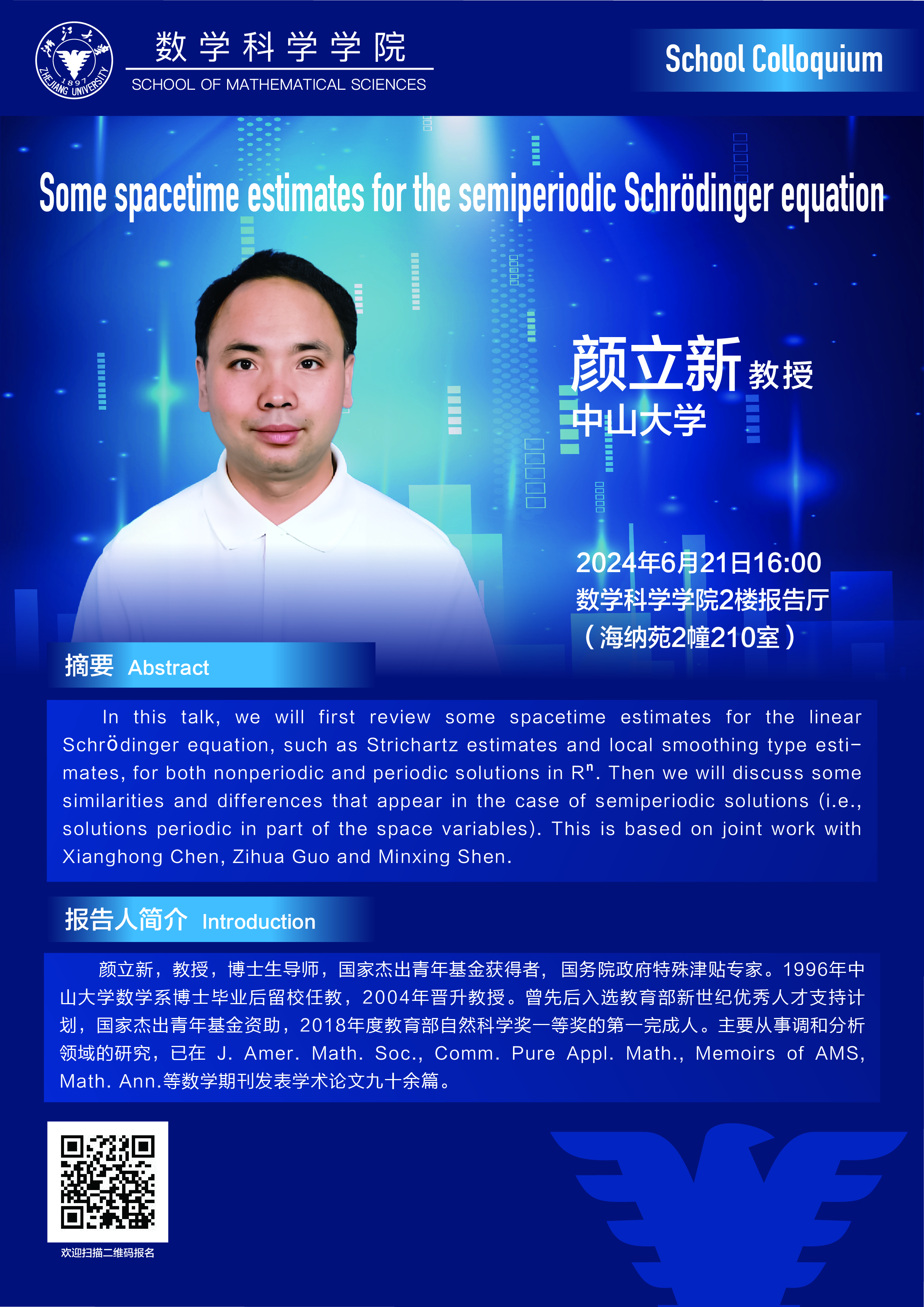 通知公告 通知公告 学术活动 学术会议 新闻图片 院系新闻 院内邮件 2024 乐竞APP在线登录 > School Colloquium——Some spacetime estimates for the semiperiodic Schrödinger equation 来源:乐竞体育官方app下载 发布时间:2024-06-17 380