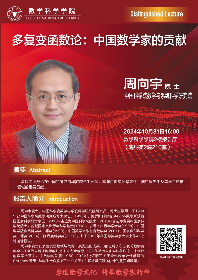 学术科研 学术团队 学术活动 学术会议 学术报告 讨论班 School Colloquium 信息公告 文件汇编 School Colloquium 乐竞APP在线登录 > Distinguished Lecture——多复变函数论:中国数学家的贡献 来源:乐竞体育官方app下载 发布时间:2024-10-29 363