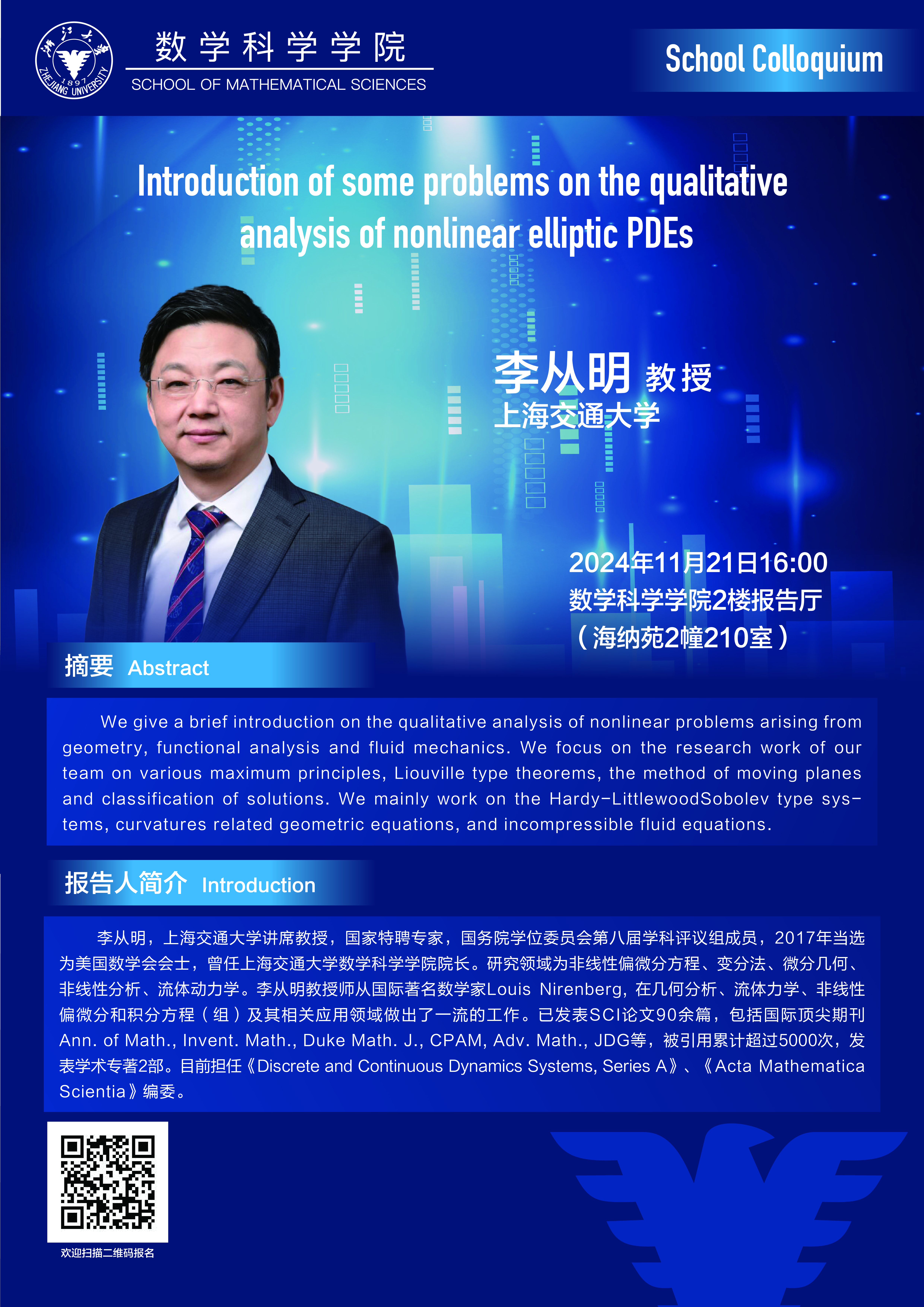 学术科研 学术团队 学术活动 学术会议 学术报告 讨论班 School Colloquium 信息公告 文件汇编 School Colloquium 乐竞APP在线登录 > School Colloquium——Introduction of some problems on the qualitative analysis of nonlinear elliptic PDEs 来源:乐竞体育官方app下载 发布时间:2024-11-18 245