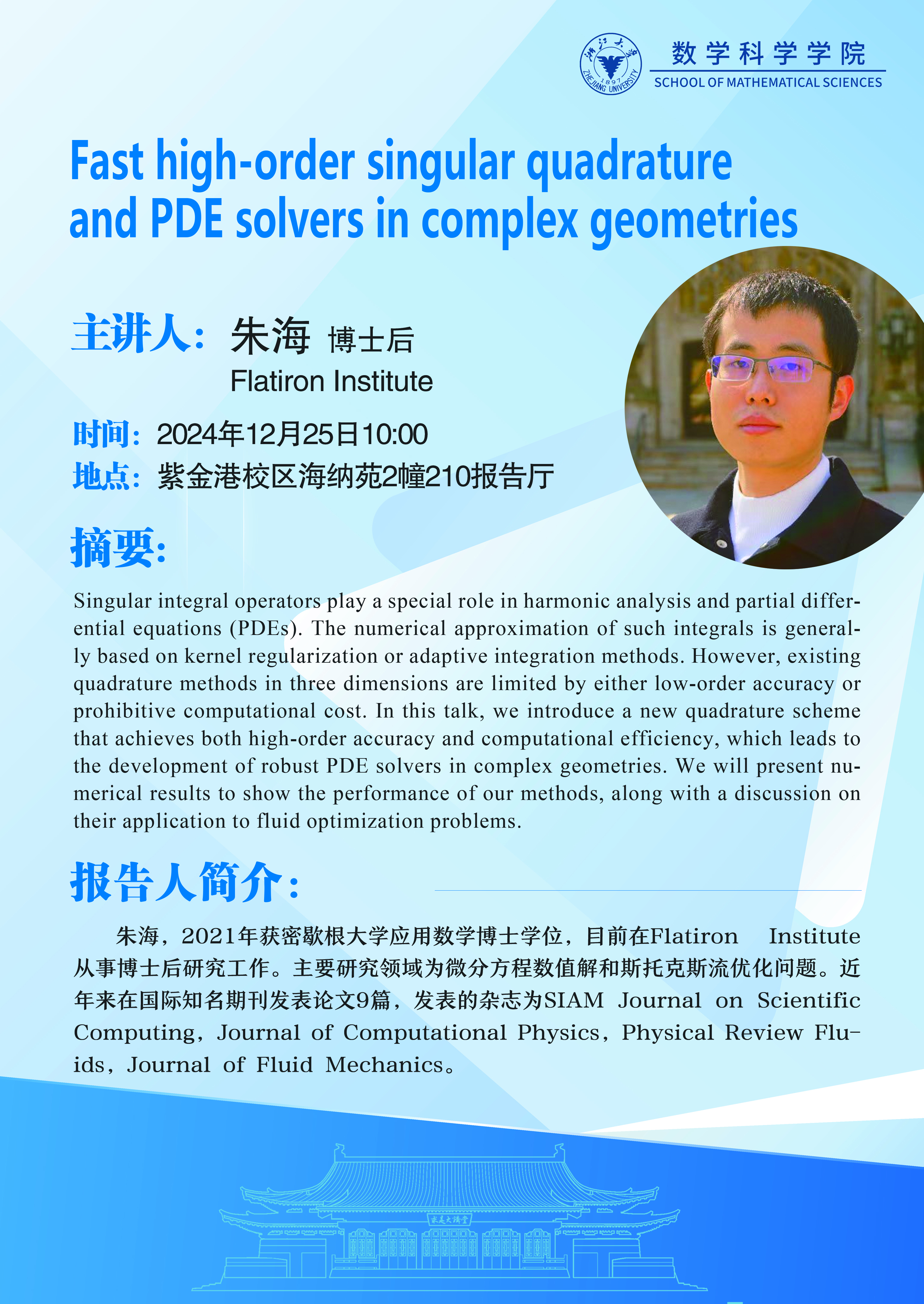 通知公告 通知公告 学术活动 学术会议 新闻图片 院系新闻 院内邮件 2024 乐竞APP在线登录 > Fast high-order singular quadrature and PDE solvers in complex geometries 来源:乐竞体育官方app下载 发布时间:2024-12-23 150