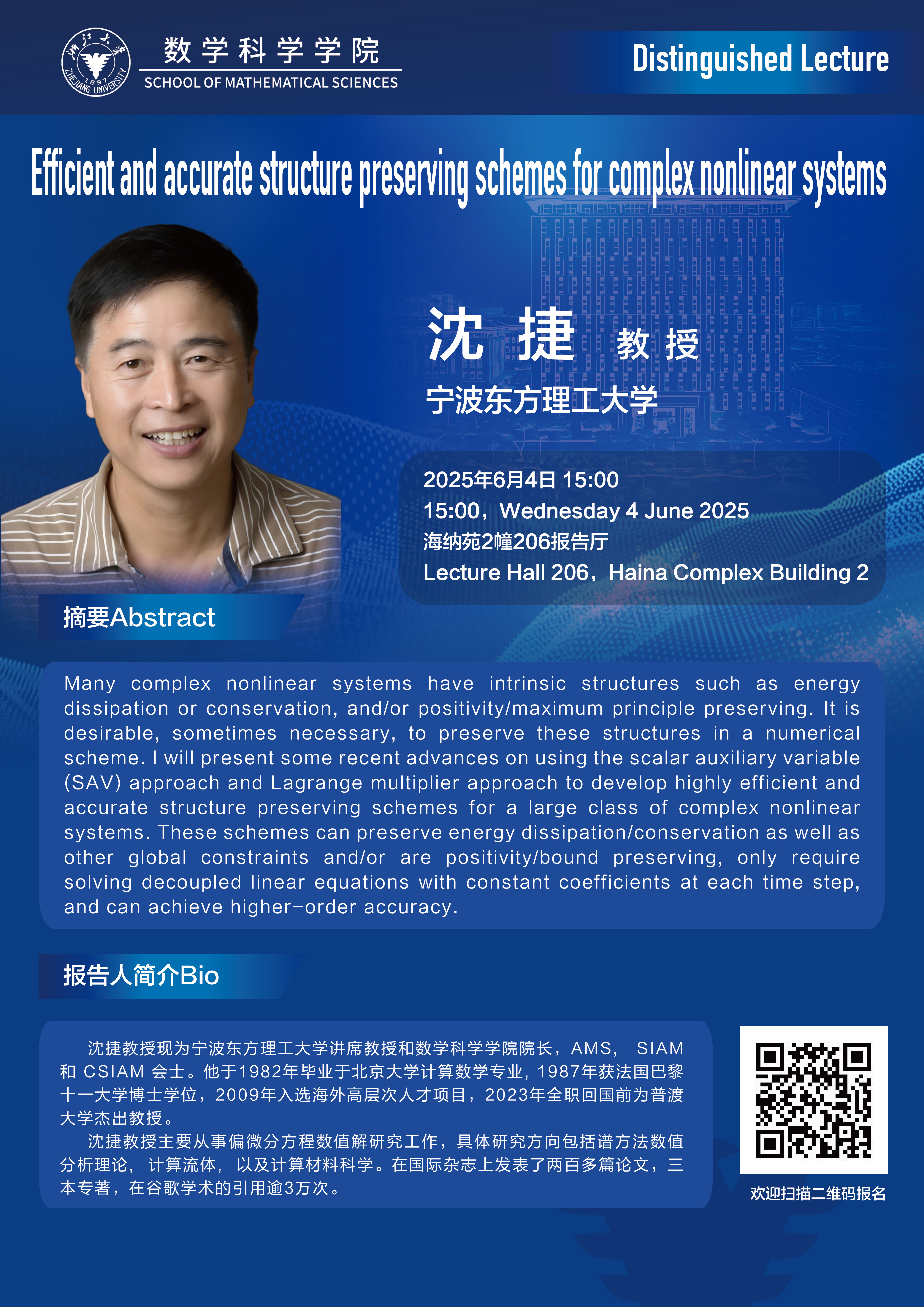 学术科研 学术团队 学术活动 学术会议 学术报告 讨论班 School Colloquium 信息公告 文件汇编 School Colloquium 乐竞APP在线登录 > Distinguished Lecture——Efficient and accurate structure preserving schemes for complex nonlinear systems 来源:乐竞体育官方app下载 发布时间:2025-06-03 24