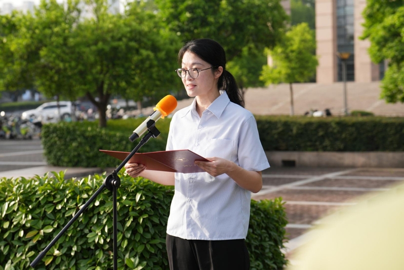 学院党委副书记孙凯老师在国旗下讲话,鼓励同学们做有理想、敢担当、能吃苦、肯奋斗的新时代好青年,在推进强国建设、民族复兴伟业中,立足基础学科、聚焦科技前沿开展科学研究,弘扬“科学家精神”,勇攀科学高峰,在广阔舞台展现青春作为、彰显青春风采、贡献青春力量。