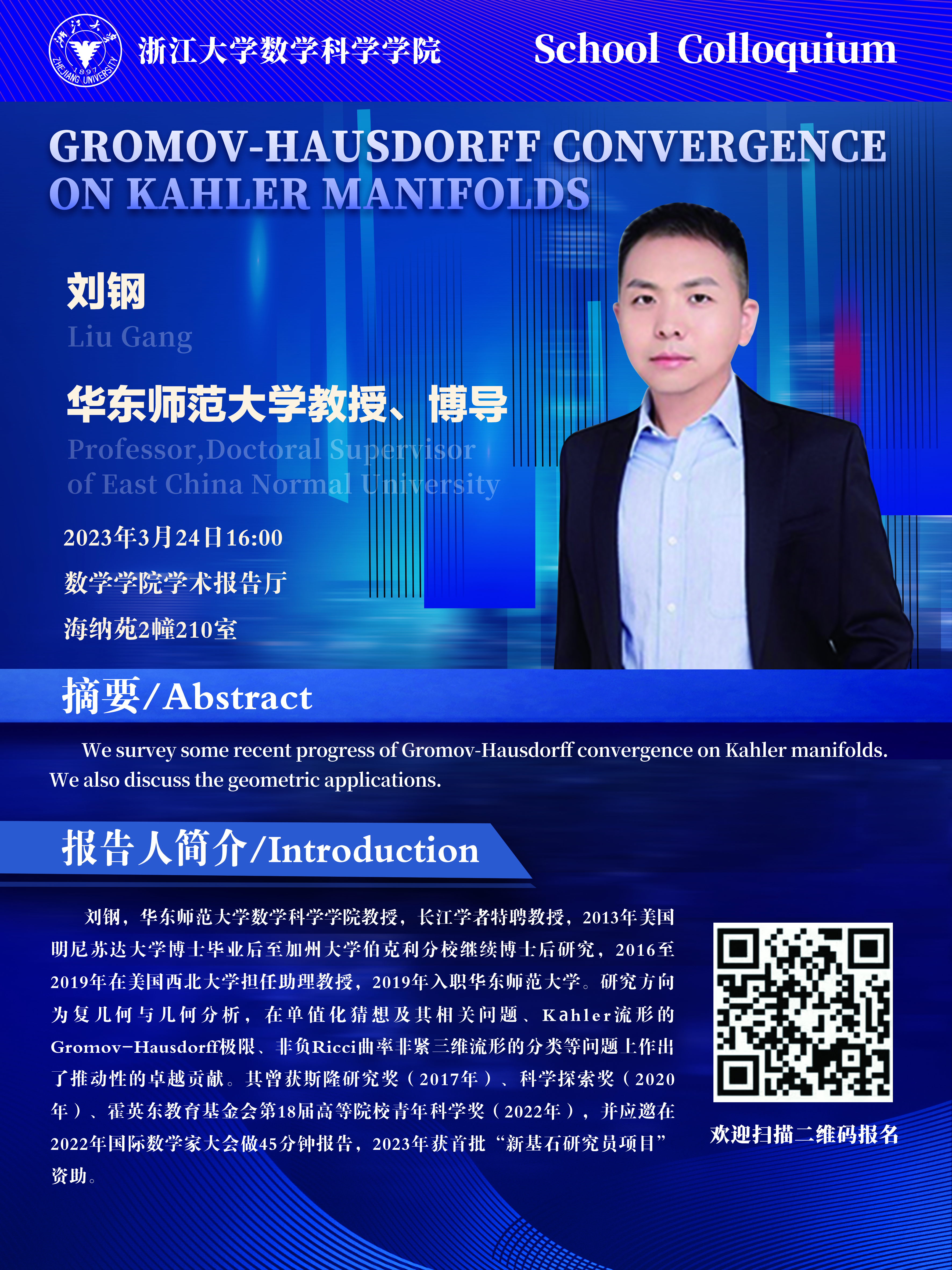 Location: 210, Building 2, Hainayuan, School of Mathematical Sciences, Zijingang Campus