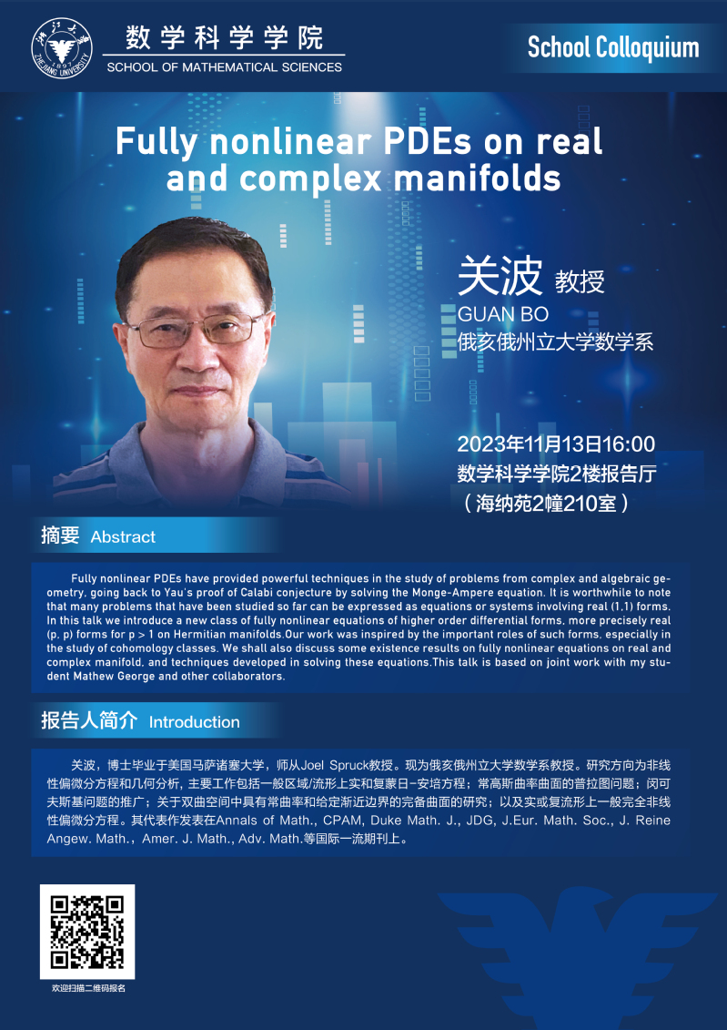 School Colloquium——Fully nonlinear PDEs on real and complex manifolds