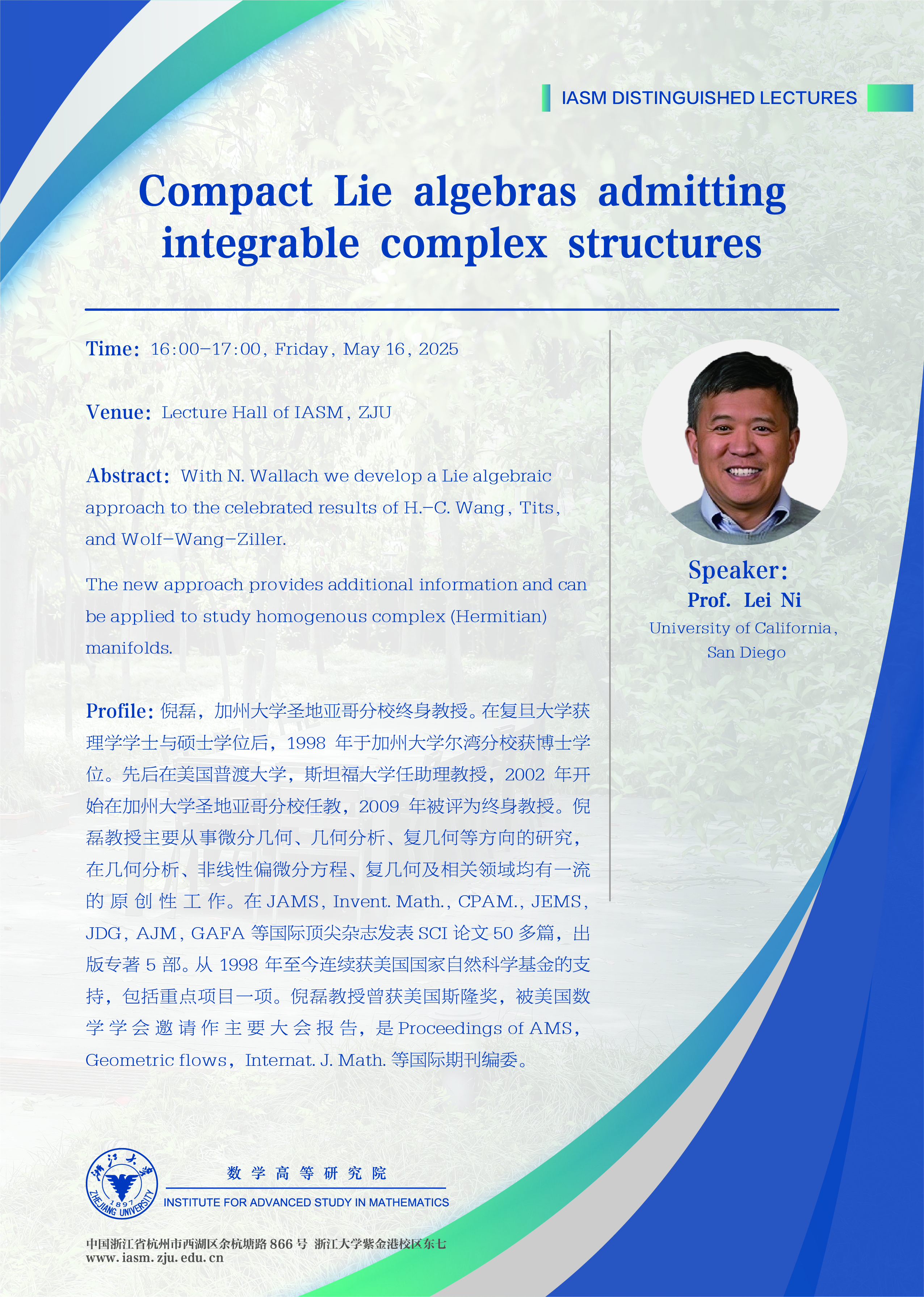 Speaker : Lei Ni,University of California,San Diego