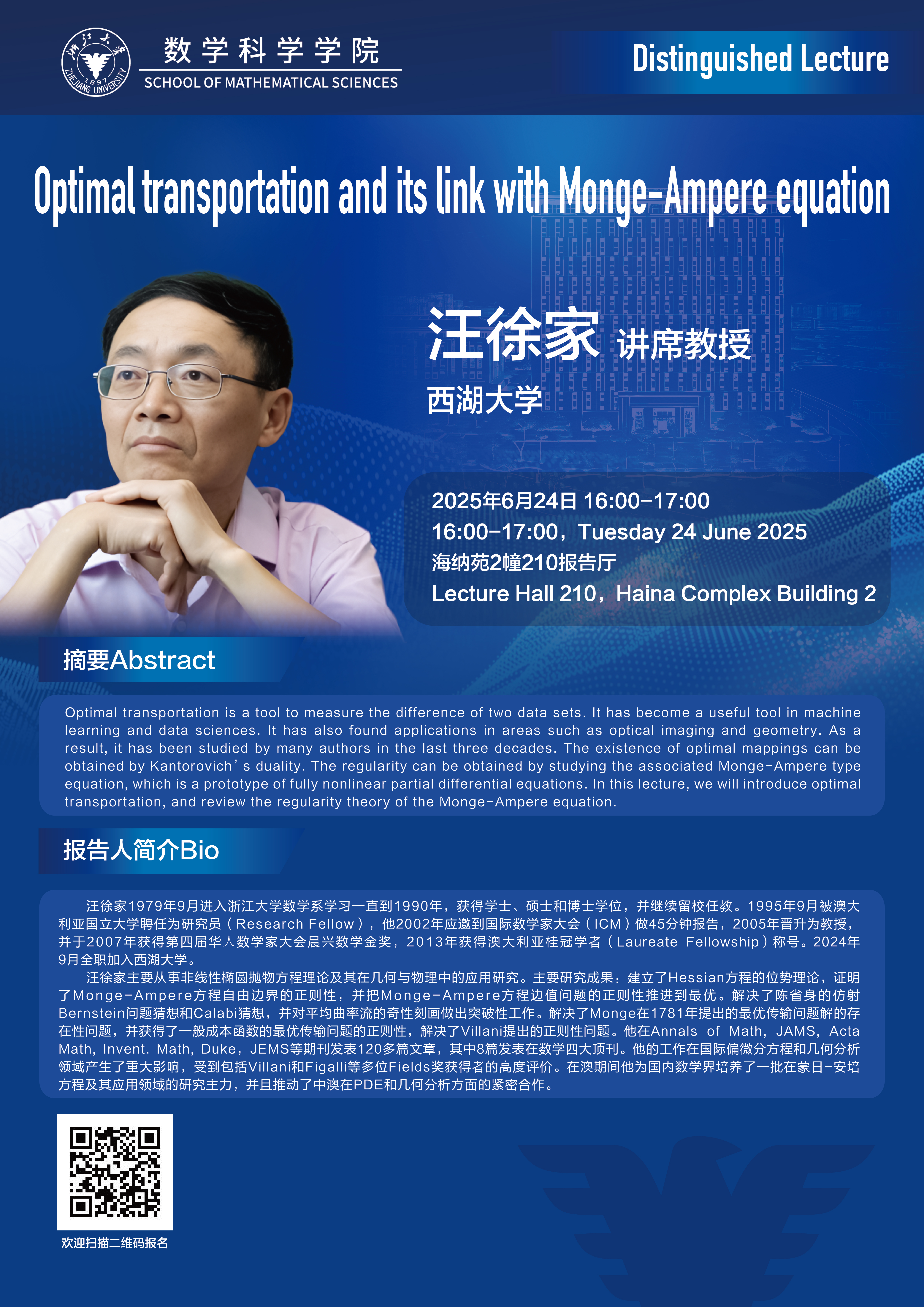 Distinguished Lecture——Optimal transportation and its link with Monge-Ampere equation
